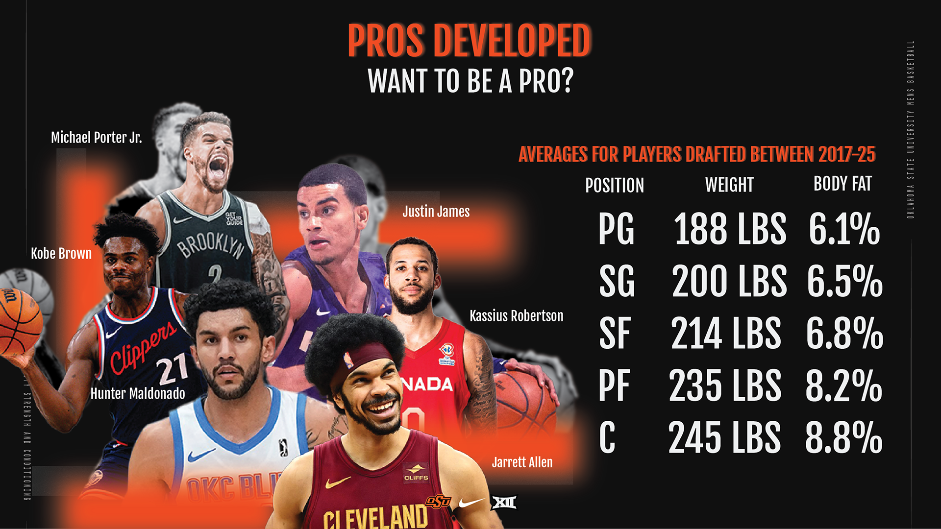 This is a 12-slide presentation deck for the OSU Men’s Basketball Strength and Conditioning Coach, designed to recruit basketball players from around the world to Oklahoma State University. The deck adheres to OSU brand guidelines and showcases a clean, high-impact visual system that highlights facilities, training philosophy, athlete development, and the program’s competitive edge. It was built to be both informative and motivational, giving prospective athletes a clear look into the culture, expectations, and opportunities within OSU Men’s Basketball. (Slides have been intentionally omitted to protect private information).